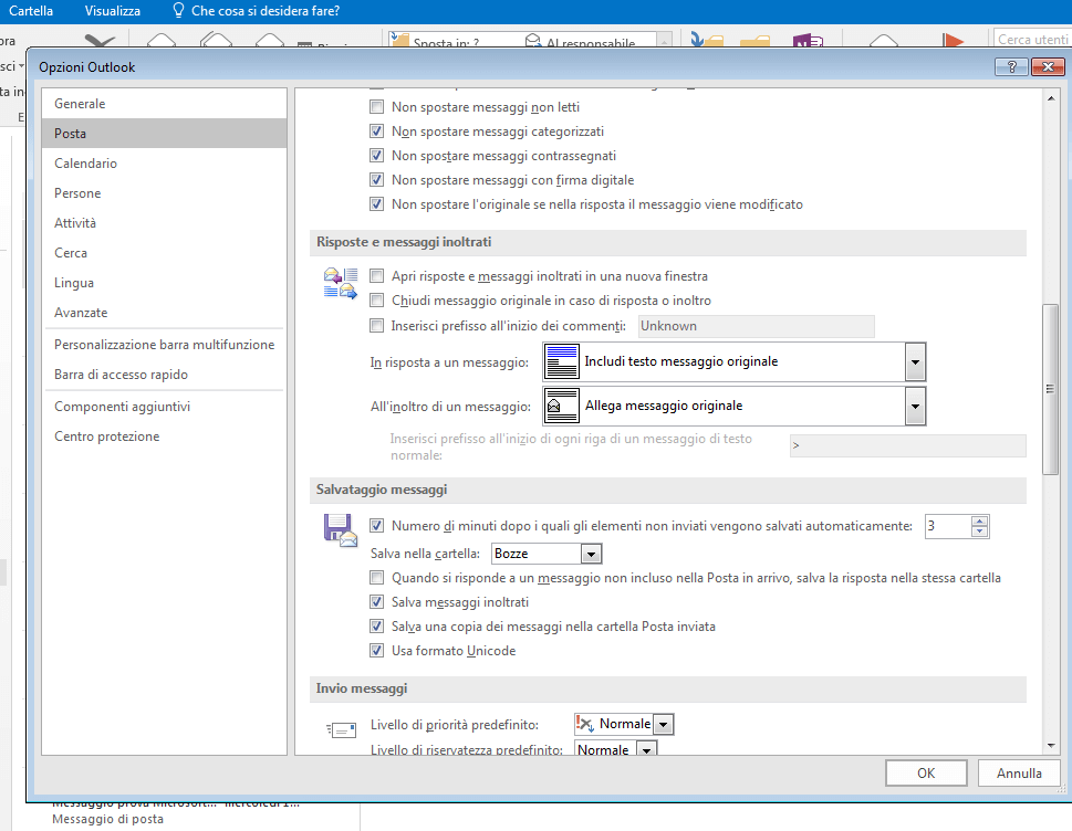 3. Posizionarsi Risposte e Messaggi Inoltrati e modificare il campo alla voce “All’inoltro di un messaggio” selezionando dal menu “Allega Messaggio Originale”. Premere il bottone OK e inoltrare il messagio.